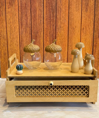 استند چوبی اطلس کشو حصیری سایز بزرگ